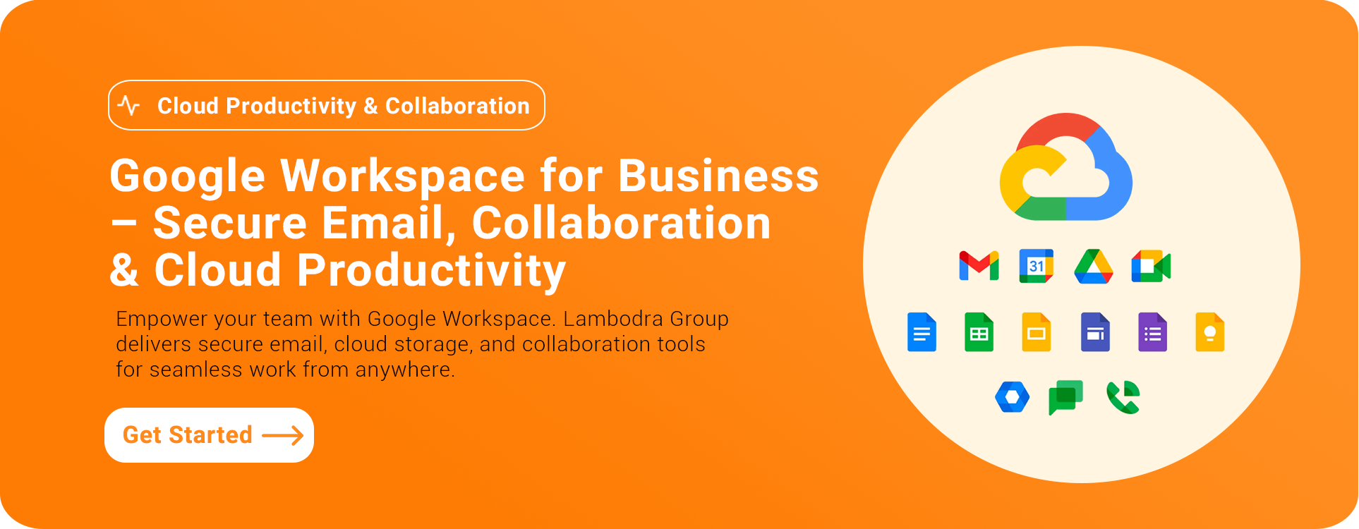 Google Workspace is a cloud-based productivity suite from Google that includes Gmail, Drive, Meet, Docs, Sheets, and collaboration tools for businesses.